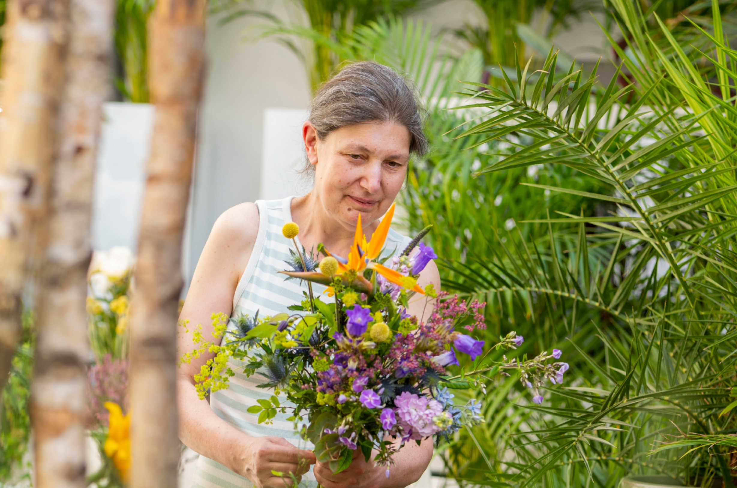 "Blommor är mitt liv. Jag växte upp med det. Det jag tycker mest om är att binda buketter och kontakten med kunderna, de roliga samtalen. Jag tycker också om att följa de senaste trenderna. För att göra det åker vi till Maison&Objet-mässan i Paris varje år. Där ser vi vad modeföretagen gör. Det är så man får nya idéer."