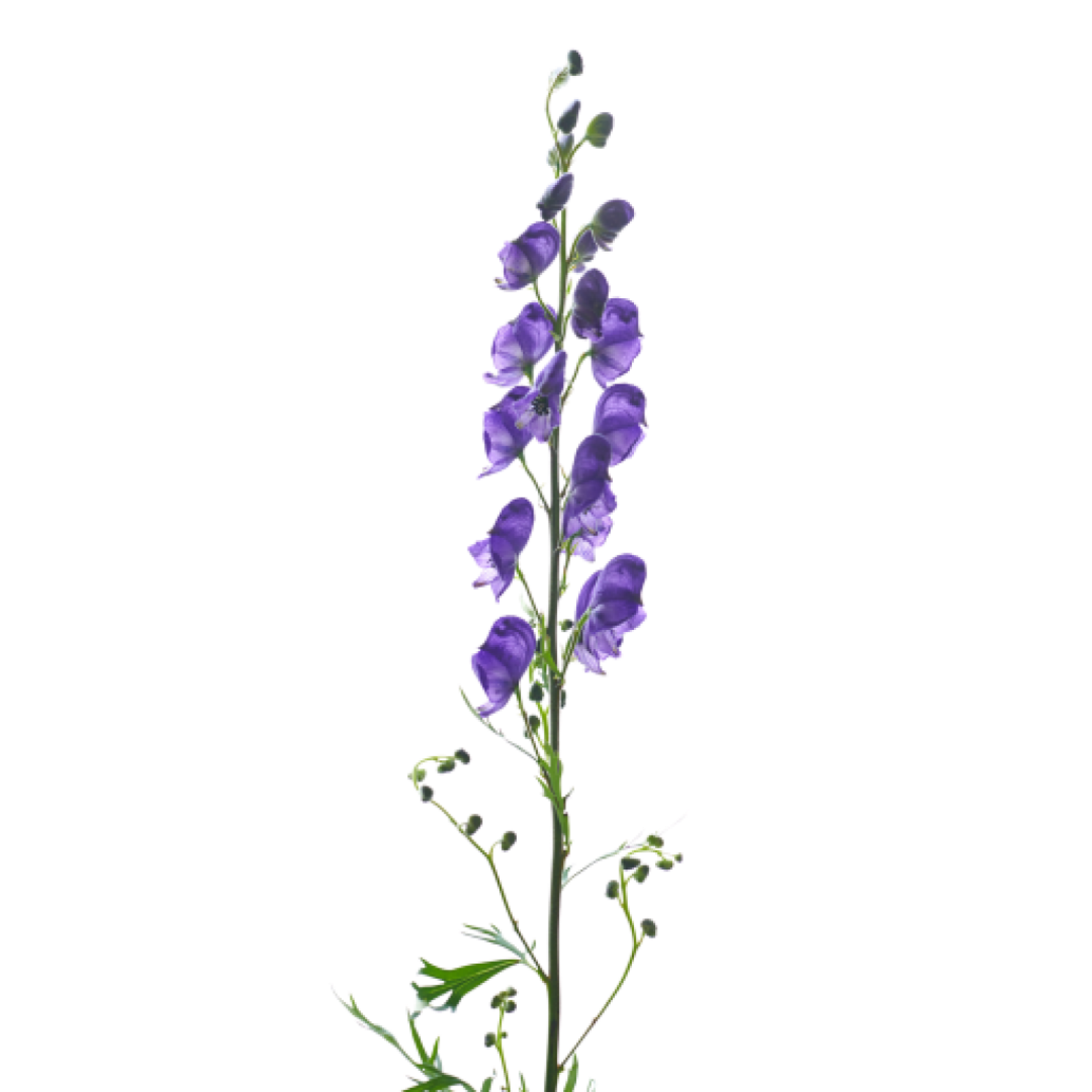 Aconitum symboliserar beslutsamhet och att övervinna hinder. Om du vill ge någon en hjärtlig hälsning är det här en perfekt blomma.
