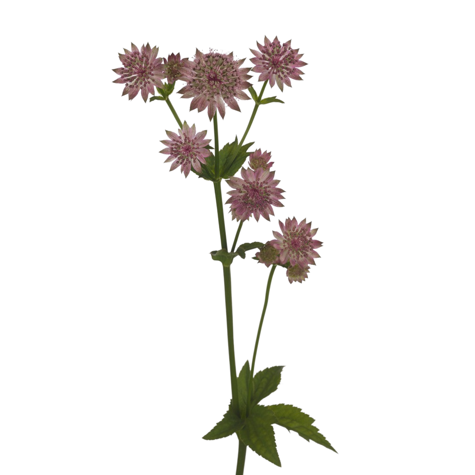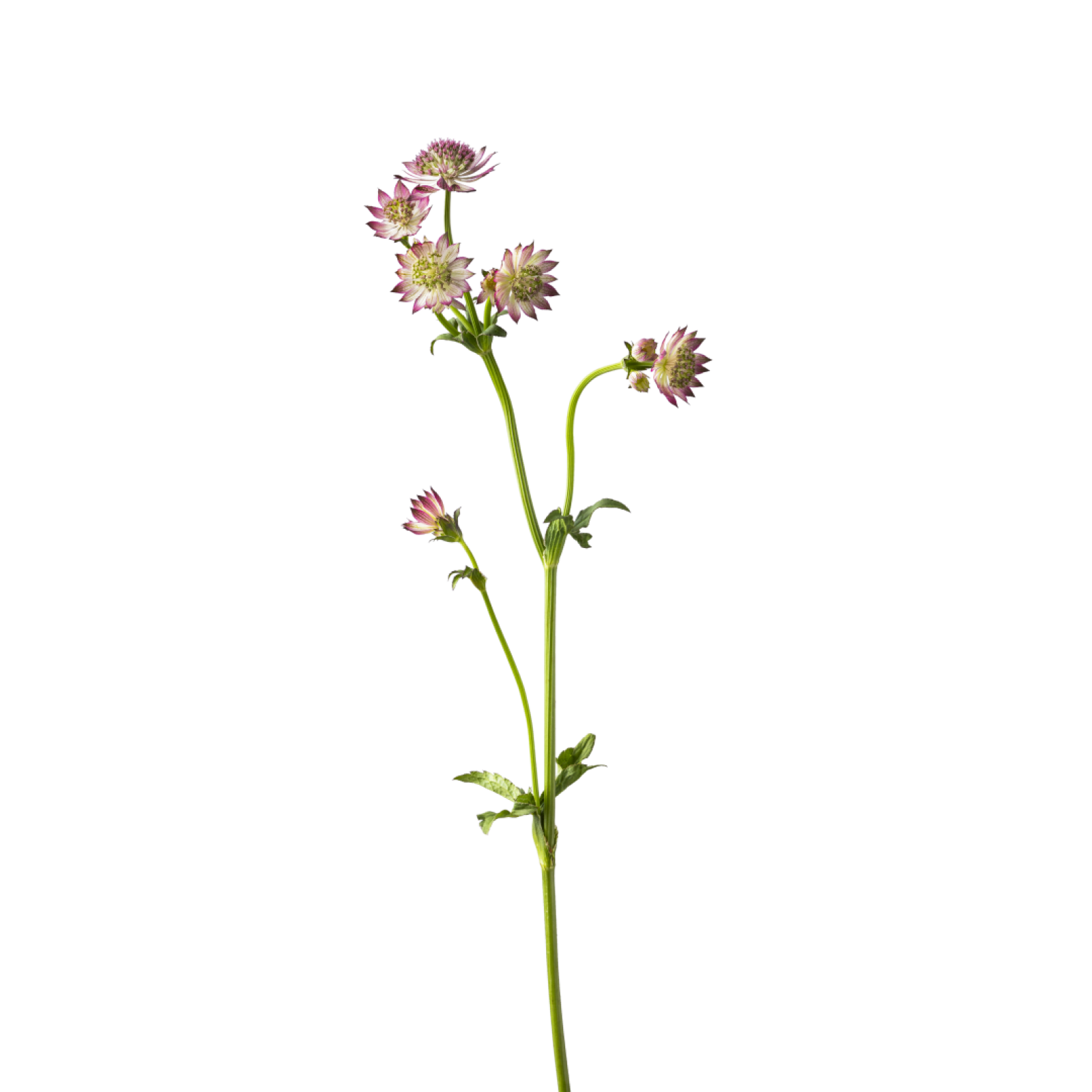 Astrantia, även känd som Zeeländsk knut. Med sina slående blommor och sitt skira utseende är astrantian ett populärt val i buketter och blomsterarrangemang.