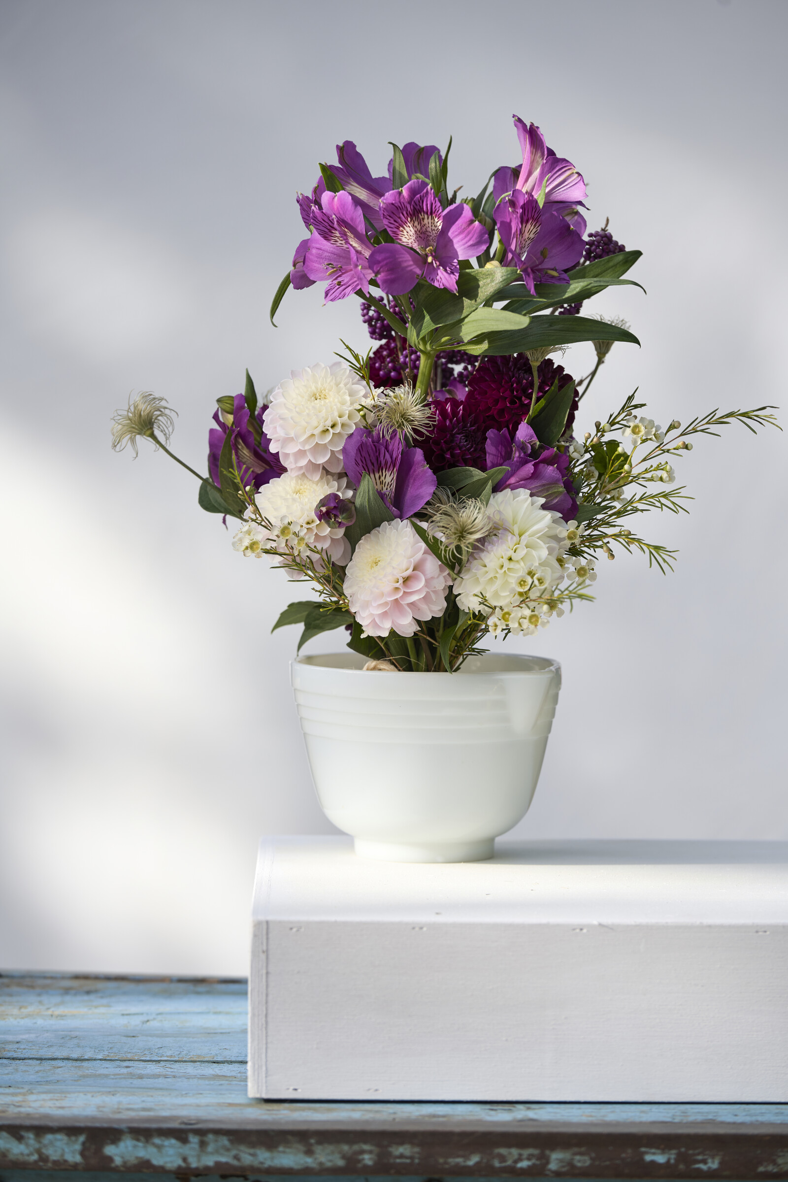 Du kan presentera Chamelaucium på olika sätt. Du kan t.ex. använda den som en monoblomma för en minimalistisk effekt. Men blomman kan också fungera bra i en bukett som utfyllnad.