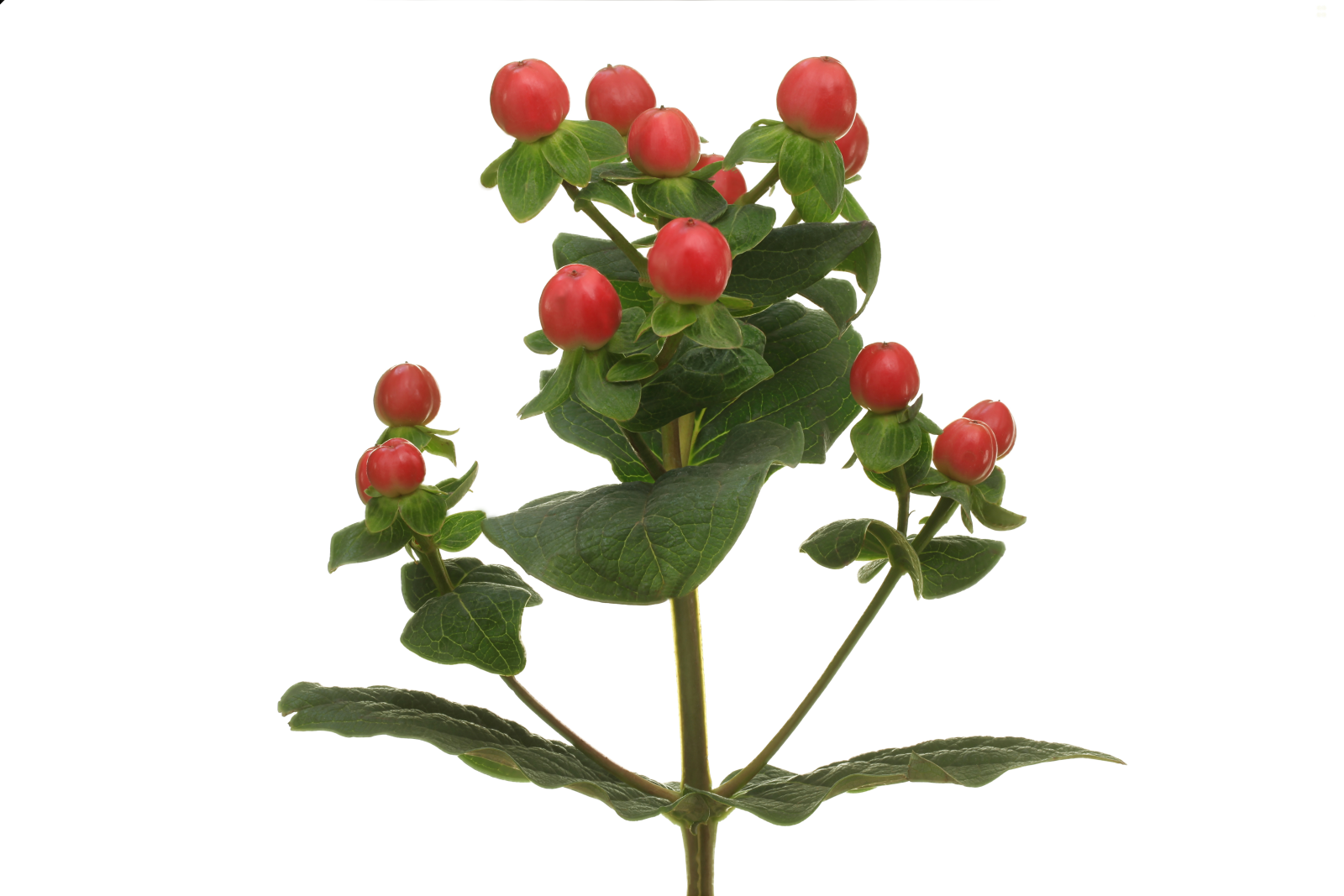 Hypericum finns i en mängd olika färger, bl.a. rött, orange, gult och grönt. Denna art ger liv åt buketter och blomsterarrangemang.