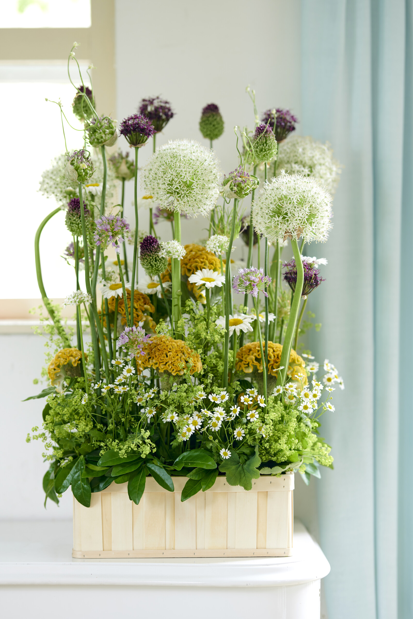 - Eleganta applikationerMed sina strålande vita kronblad och gulhjärtade blomhuvuden tillför Leucanthemum ett fräscht och tidlöst element till blomsterarrangemang.