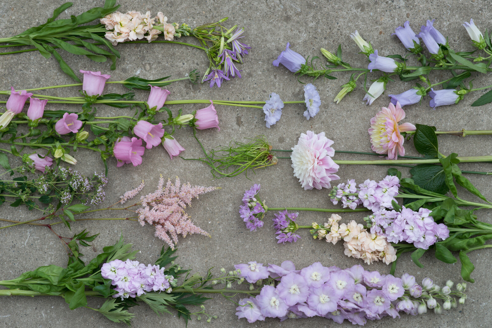 Matthiola finns i en rad ljusa färger, men också i pastellfärger från vitt och rosa till lila och gult.