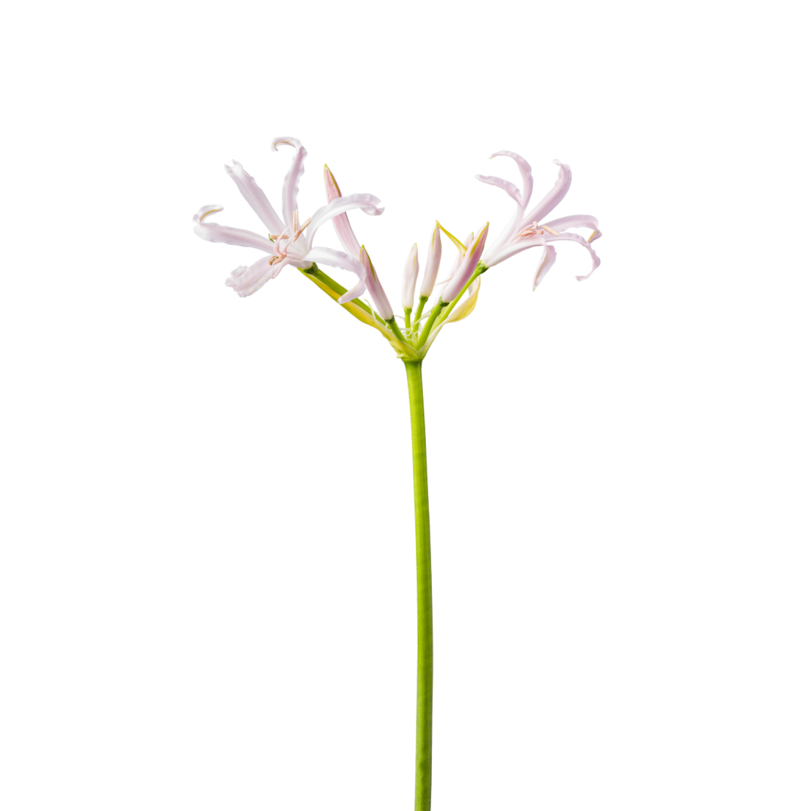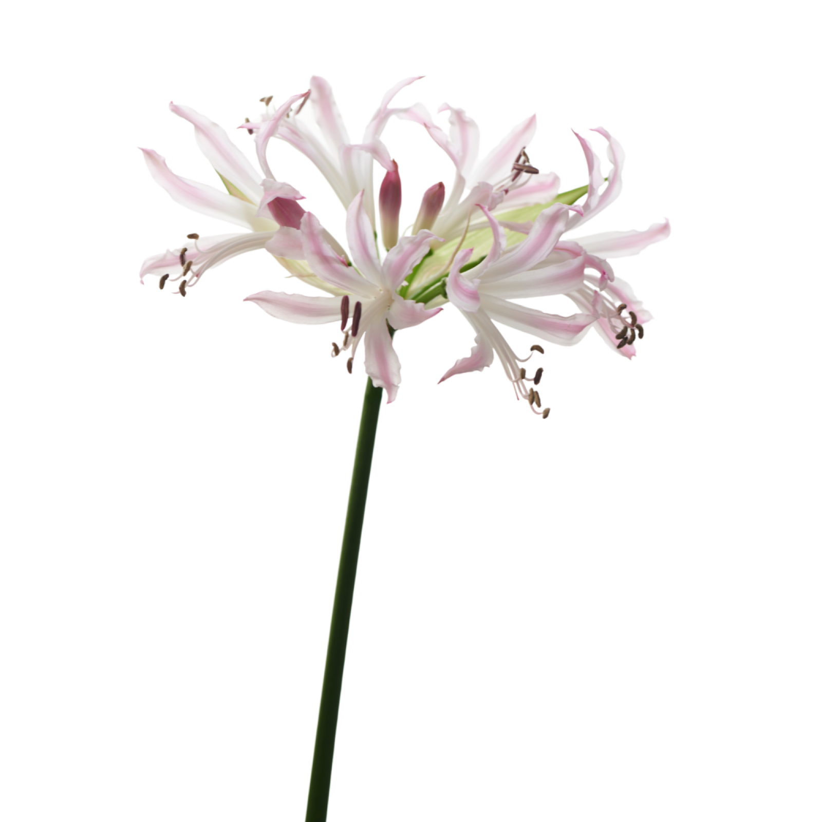 Nerine är ett perfekt blickfång i en bukett. Blomman har långa, smala stjälkar med en iögonfallande knopp i toppen. Knoppen öppnar sig gradvis och ur den växer en krans av blommor med iögonfallande långa kronblad i olika färger.