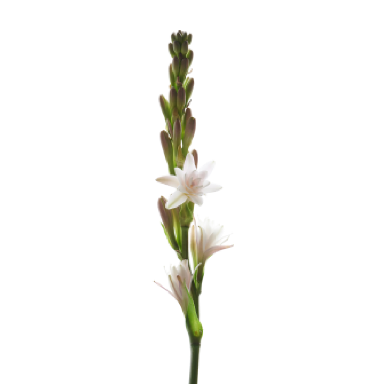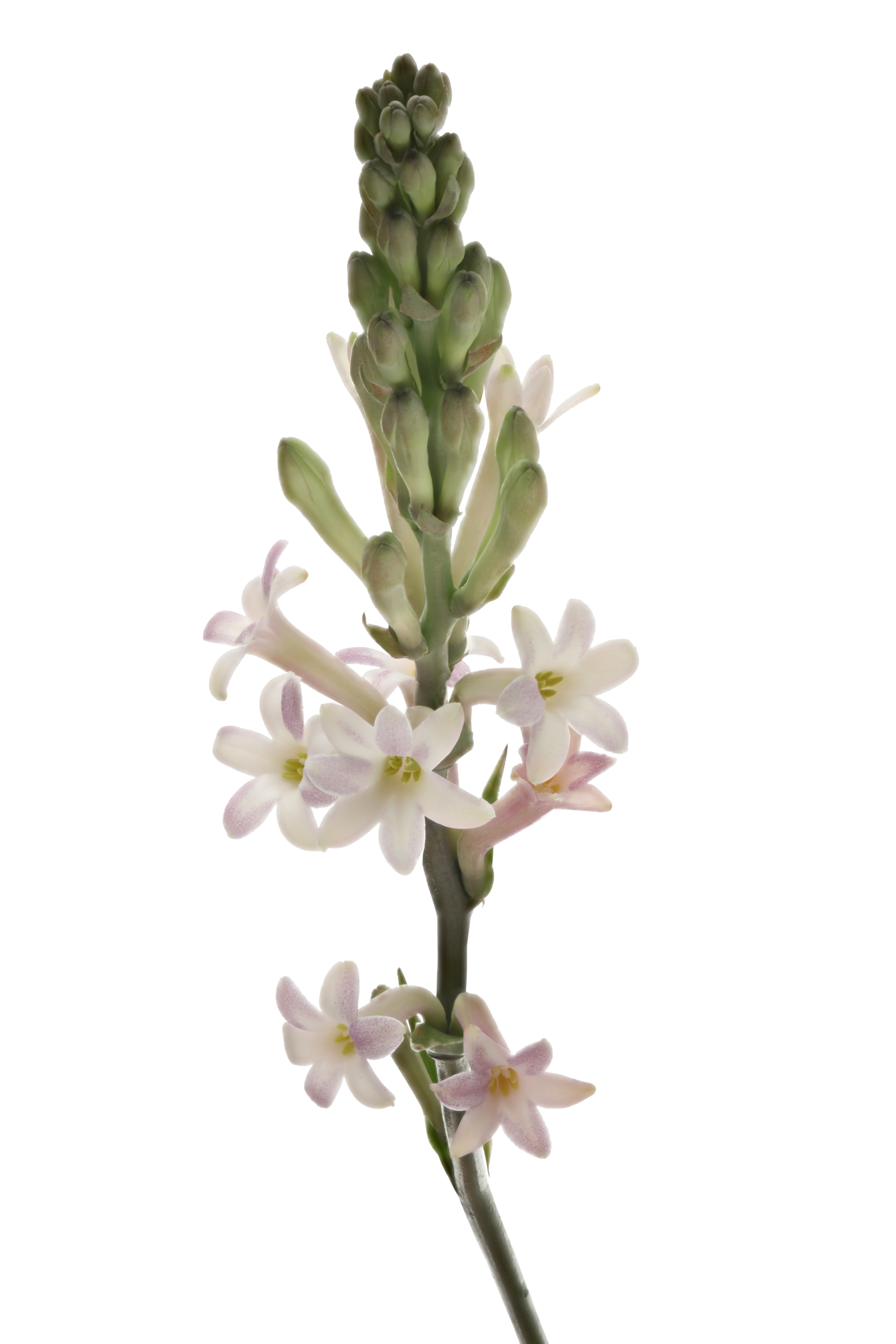 Polianthes är känd för sina långa, eleganta stjälkar som täcks av dussintals små, vita blommor.