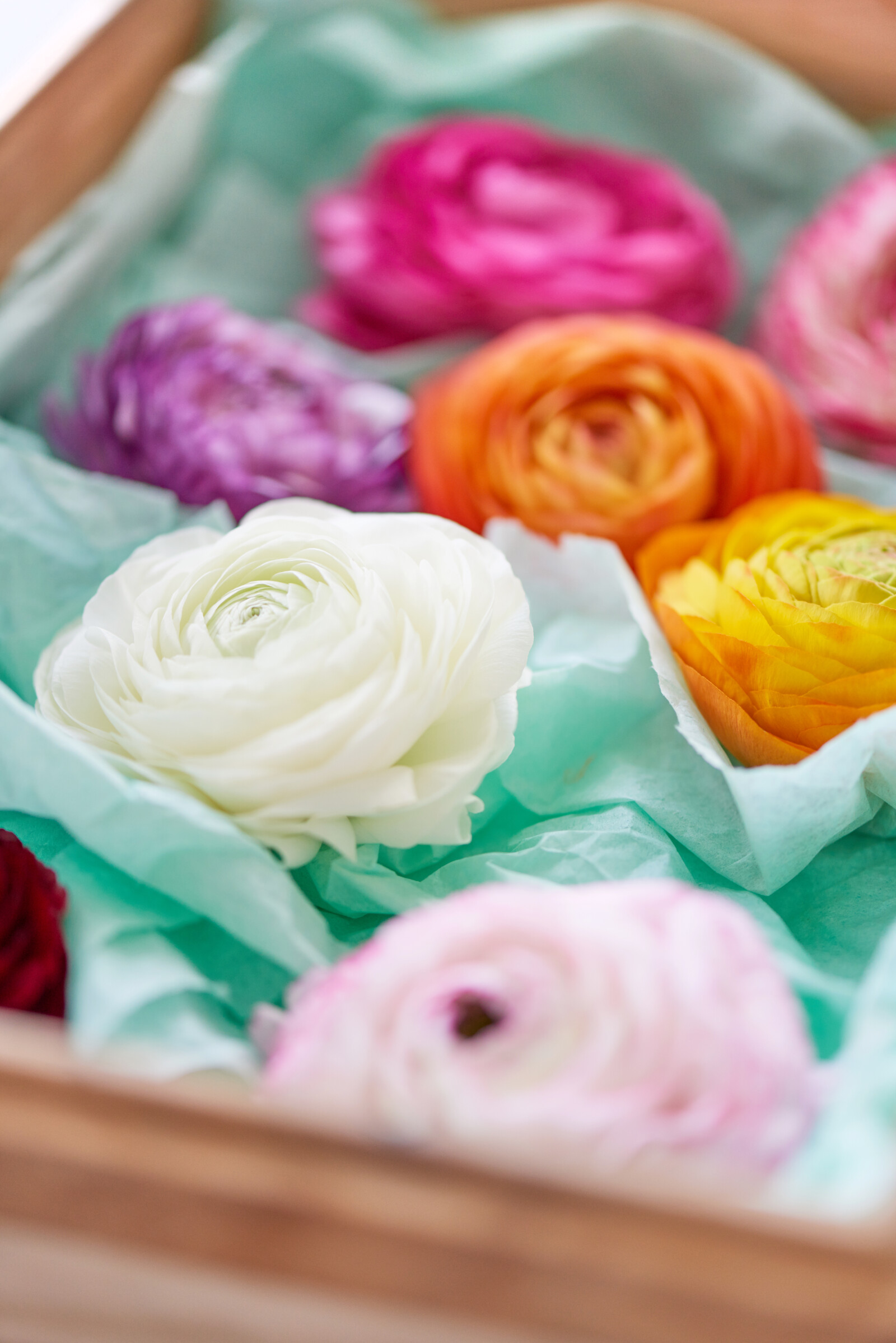 Ranunkelns färger är mycket varierande. Från livfulla nyanser till mjuka pasteller, varje kronblad är intensivt i sin egen unika färg.
