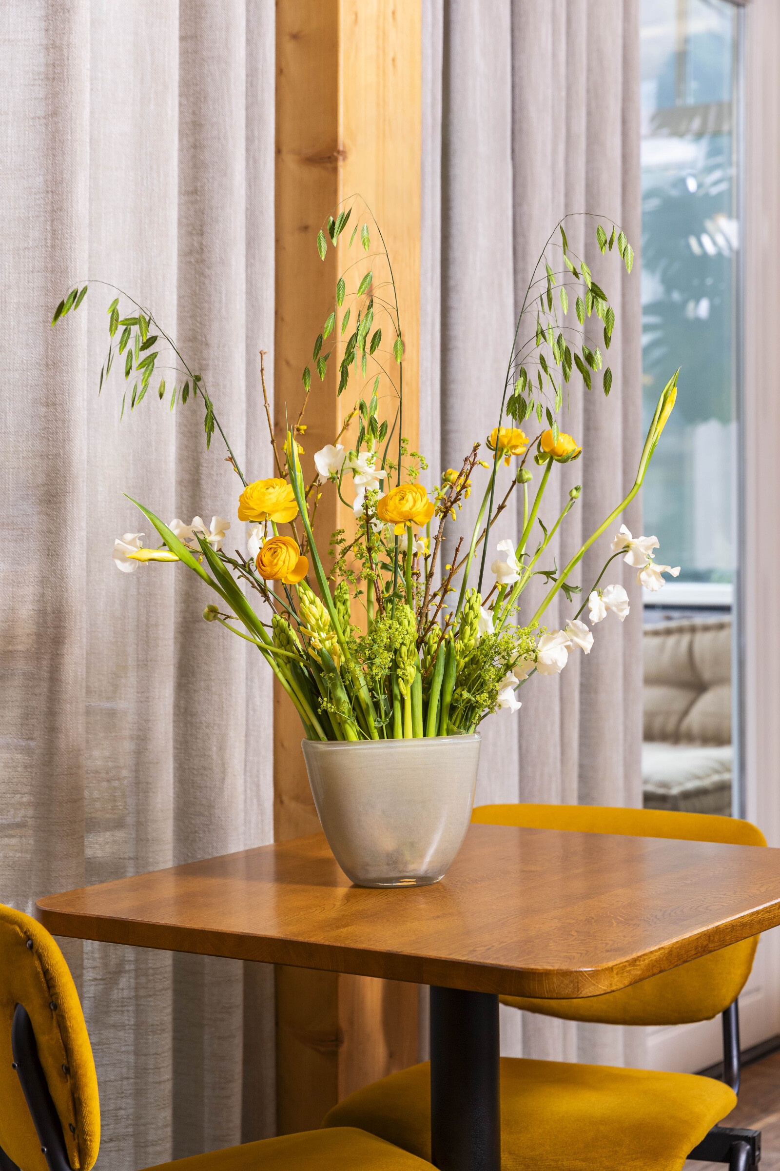 Ranunkeln har karisma. Den har en smal, friskgrön stjälk och blommorna är färgstarka och sofistikerade med många fina kronblad som tillsammans bildar frodiga och fylliga blommor.
