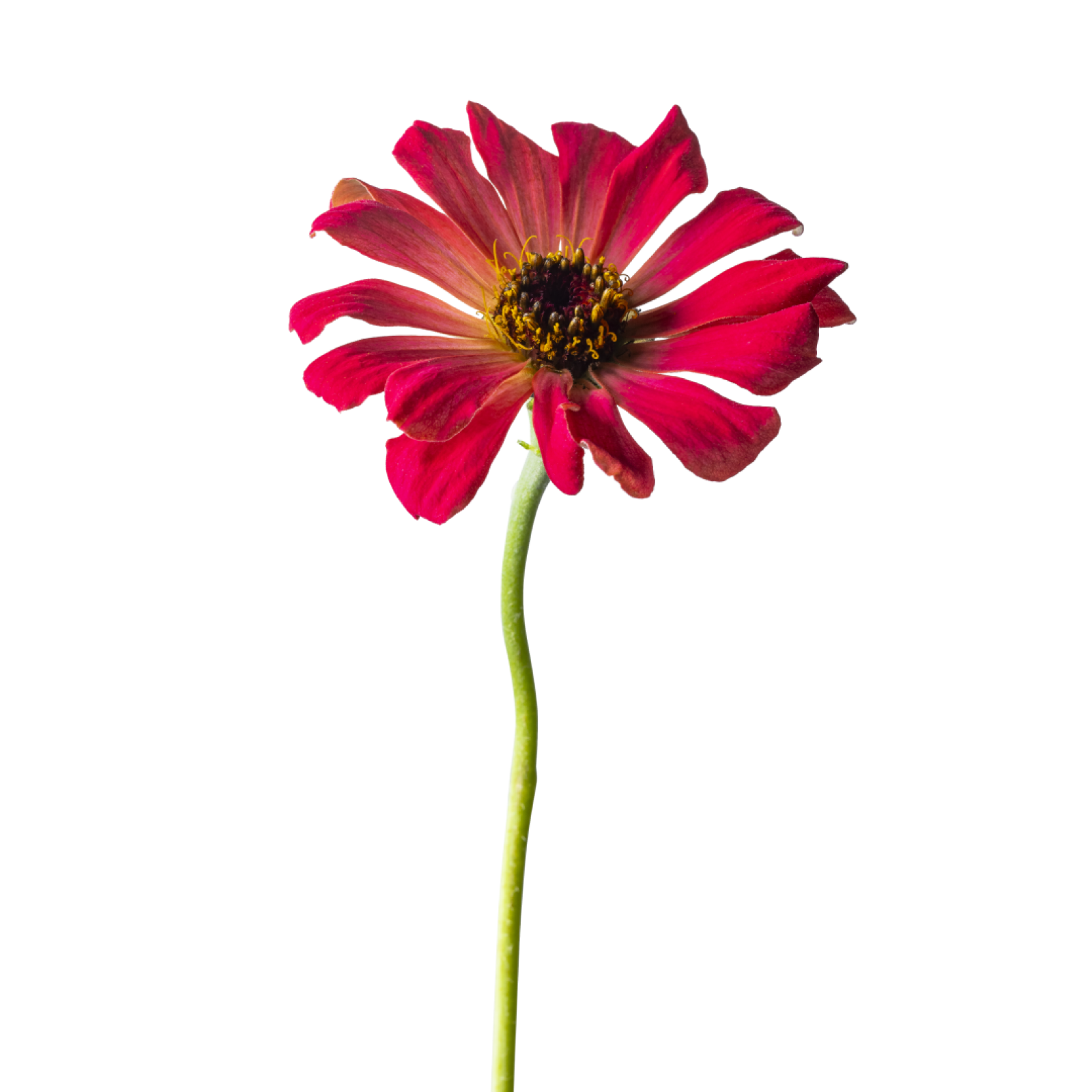 Zinnia, en vacker blomma som har sitt ursprung i det varma och färgstarka Mexiko. Zinnian är känd för sitt slående utseende. Med sina frodiga, enkla eller dubbla blomhuvuden och livfulla nyanser som sträcker sig från levande rött, strålande gult, ljuslila till mjukt rosa, drar denna blomma omedelbart till sig uppmärksamhet. Zinnians stjälkar kan vara olika långa, vilket gör dem perfekta för alla typer av buketter och blomsterarrangemang.