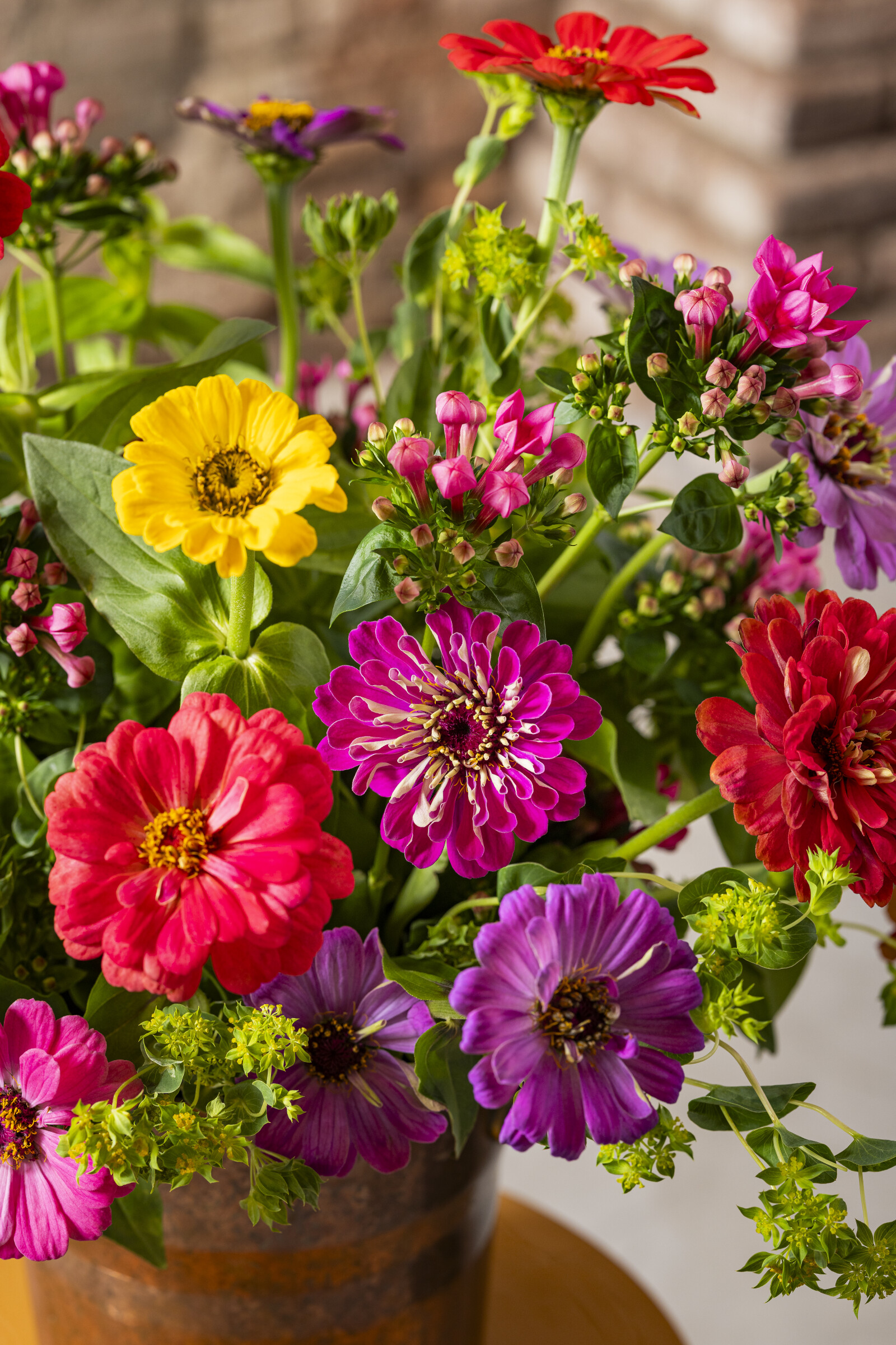 Tack vare de många olika färgerna och blomformerna kan Zinnias användas i buketter, bordsarrangemang och till och med i kransar.